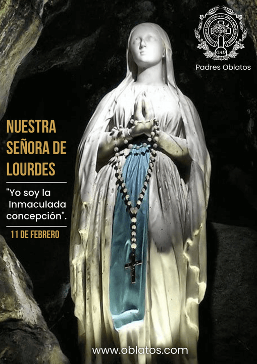 El 11 de febrero de 1858, Bernadette, una niña de catorce años, recogía leña en Massbielle, en las afueras de Lourdes, cuando acercándose a una gruta, una ráfaga de viento la sorprendió y vio una nube dorada y a una Señora vestida de blanco, con sus pies descalzos cubiertos por dos rosas doradas, que parecían apoyarse sobre las ramas de un rosal, en su cintura tenía una ancha cinta azul, sus manos juntas estaban en posición de oración y llevaba un rosario.