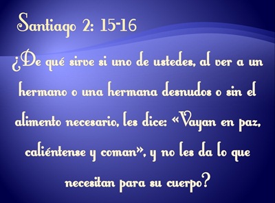 y alguno de vosotros les dice: «Idos en paz, calentaos y hartaos», pero no les dais lo necesario para el cuerpo, ¿de qué sirve?